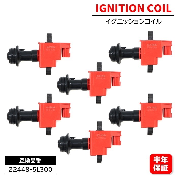 強化イグニッションコイル 6本 半年保証 22448-5L300 22448-AA100 互換品 6ヵ月保証 スカイライン ER34 ENR34 ステージア WGC34 WGNC34等
