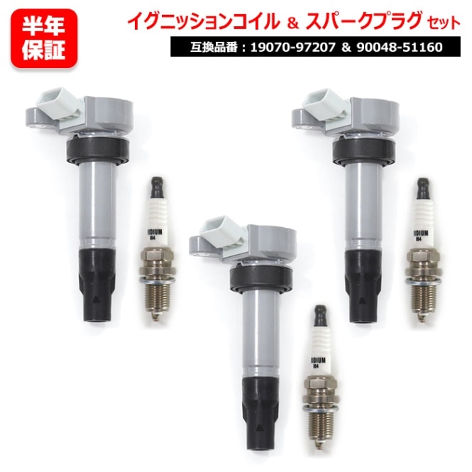 ダイハツ テリオスキッド J131G J111G イリジウム スパークプラグ & イグニッションコイル 3セット 3ピン プラグ 90048-51160 コイル 19070-97207
