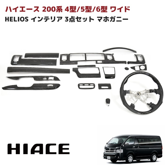 HELIOS 200系ハイエース 4型 5型 6型 7型 8型 ワイド インテリア3点セット ヘアラインウッド インテリアパネル ガングリップステアリング シフトノブ 内装 カスタムパーツ トヨタ