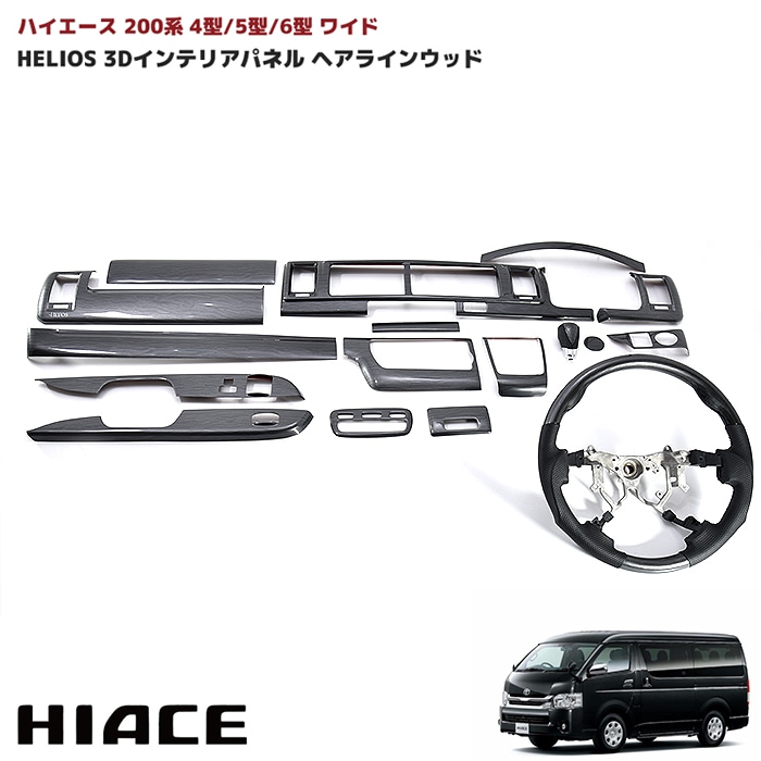 HELIOS 200系ハイエース 4型 5型 6型 7型 8型 ワイド インテリア3点セット 黒木目マホガニー インテリアパネル ガングリップステアリング シフトノブ 内装 カスタムパーツ トヨタ