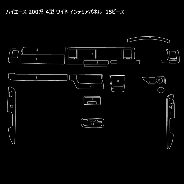 200系ハイエース 4型 5型 6型 7型 8型 ワイド 黒木目 インテリア 3点セット インテリアパネル シフトノブ ガングリップステアリング 内装 カスタムパーツ トヨタ ハンドル インパネ