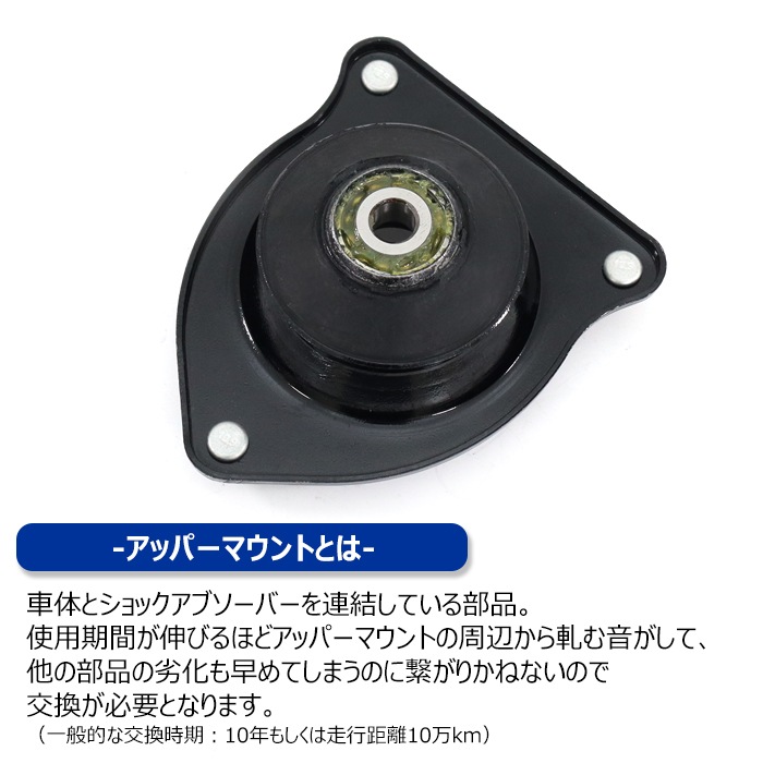 アッパーマウントとは、お車のサスペンションを車体に固定するためのパーツです。