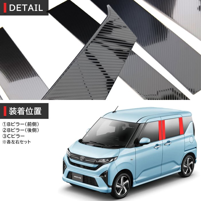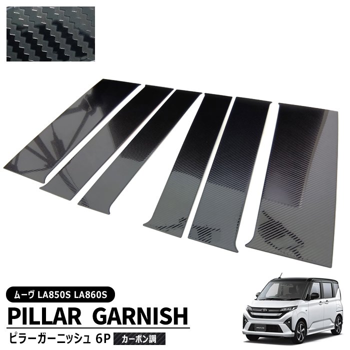 ダイハツ ムーヴ LA850S LA860S サイド ピラー ガーニッシュ 6Pセット カーボン調 新品 1台分 ウインドウ ウィンドウ カバー ムーブ